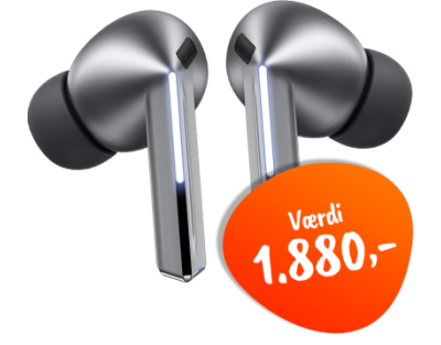 Ved fortrydelse skal Samsung Buds3 Pro returneres i original emballage. Abonnement og Samsung Buds3 Pro er et samlet køb og kan ikke ombyttes til kontanter. Da der er tilknyttet hardware til dette abonnement, forbeholder vi os retten til at afvise købet, hvis du er registreret i RKI. Det er muligt at købe ét abonnement med Samsung Buds3 Pro pr. CPR-nummer. Alle priser er inkl. moms.