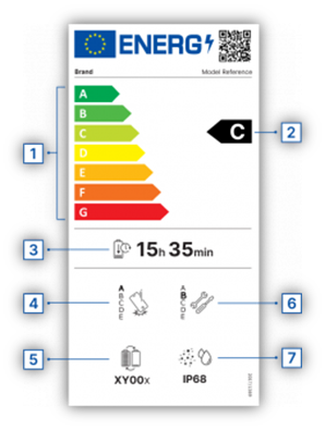 Energimærket viser dig, hvor energieffektiv og holdbar en mobil eller tablet er. Det handler både om: