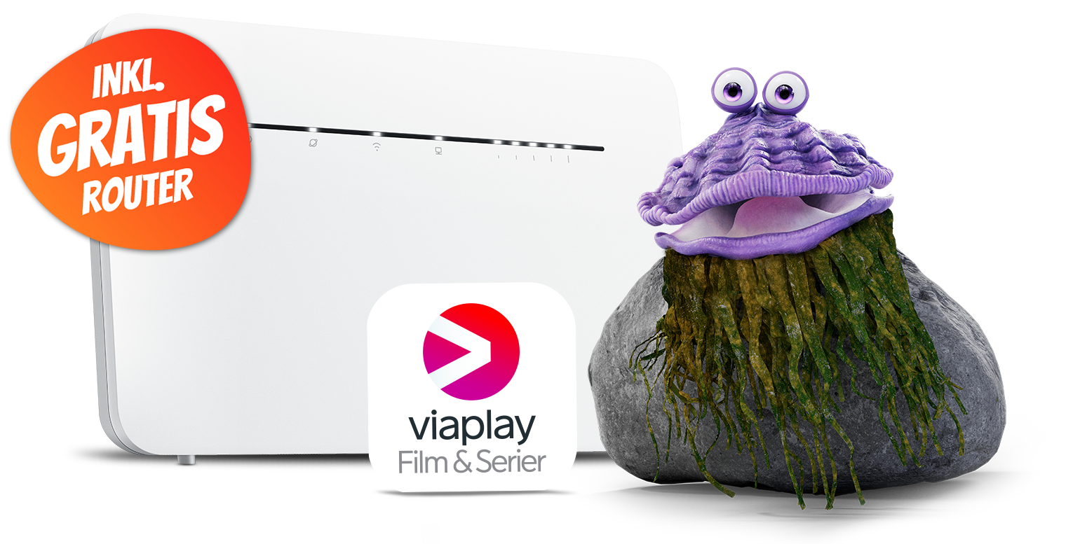 Udover masser af underholdning med Viaplay får du et simkort, en GRATIS router (værdi 990,-) og hele 2,5 TB data. Du kan tage dit internet med overalt i DK, og du slipper for komplicerede installationer - helt nemt og enkelt.