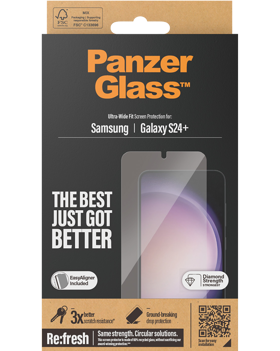 Skærmbeskyttelsen er skåret præcist efter Samsung Galaxy S24+’s mål og passer derfor helt perfekt. Med UWF skærmbeskyttelse fra PanzerGlass får du en diskret airbag, og din skærm er fremtidssikret.