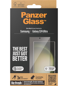Skærmbeskyttelsen er skåret præcist efter Samsung Galaxy S24 Ultra’s mål og passer derfor helt perfekt. Med UWF skærmbeskyttelse fra PanzerGlass får du en diskret airbag, og din skærm er fremtidssikret.