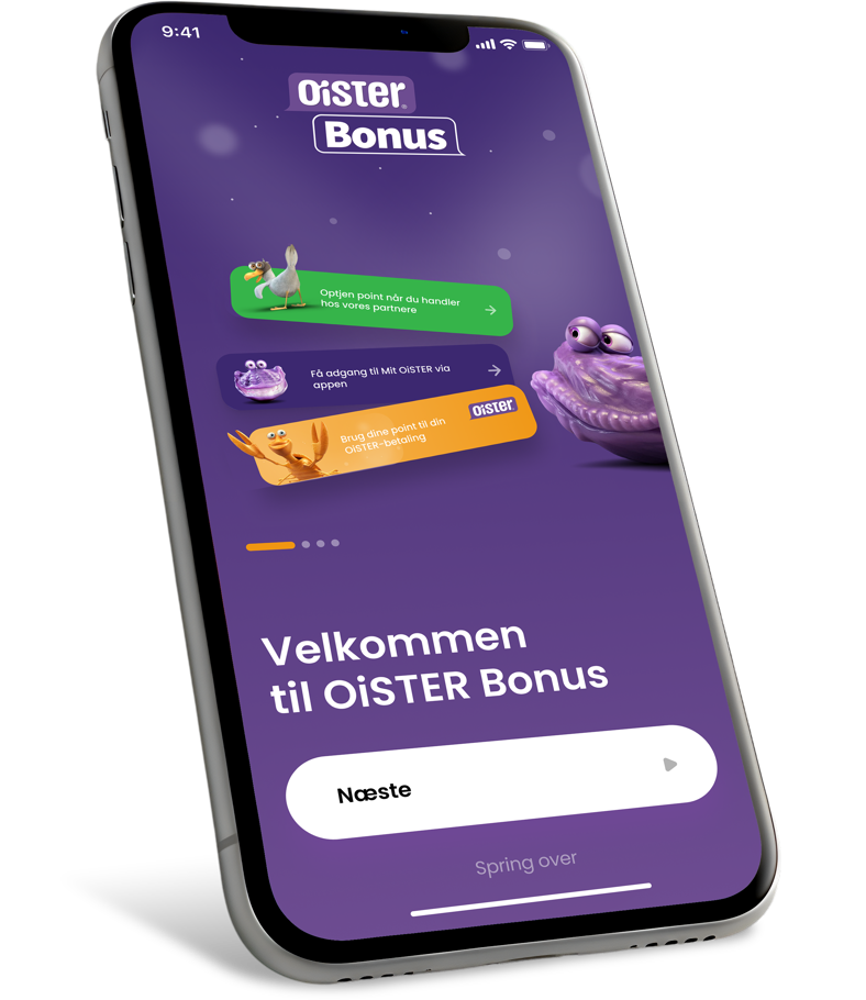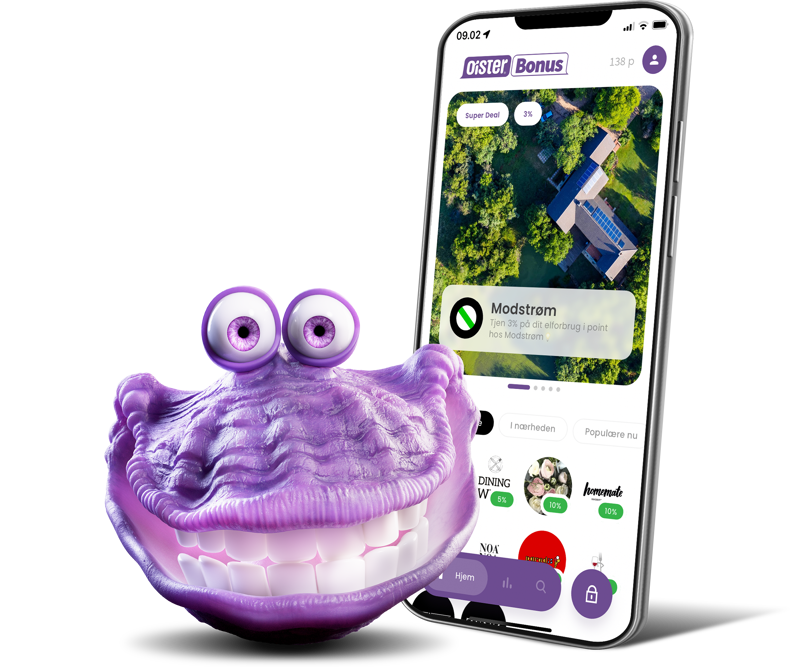 Med OiSTER Bonus kan du optjene point til din månedlige OiSTER-betaling. Du optjener point ved at downloade OiSTER Bonus-appen, tilmelde dig og handle hos en af de butikker, webshops og restauranter, vi samarbejder med over hele landet.