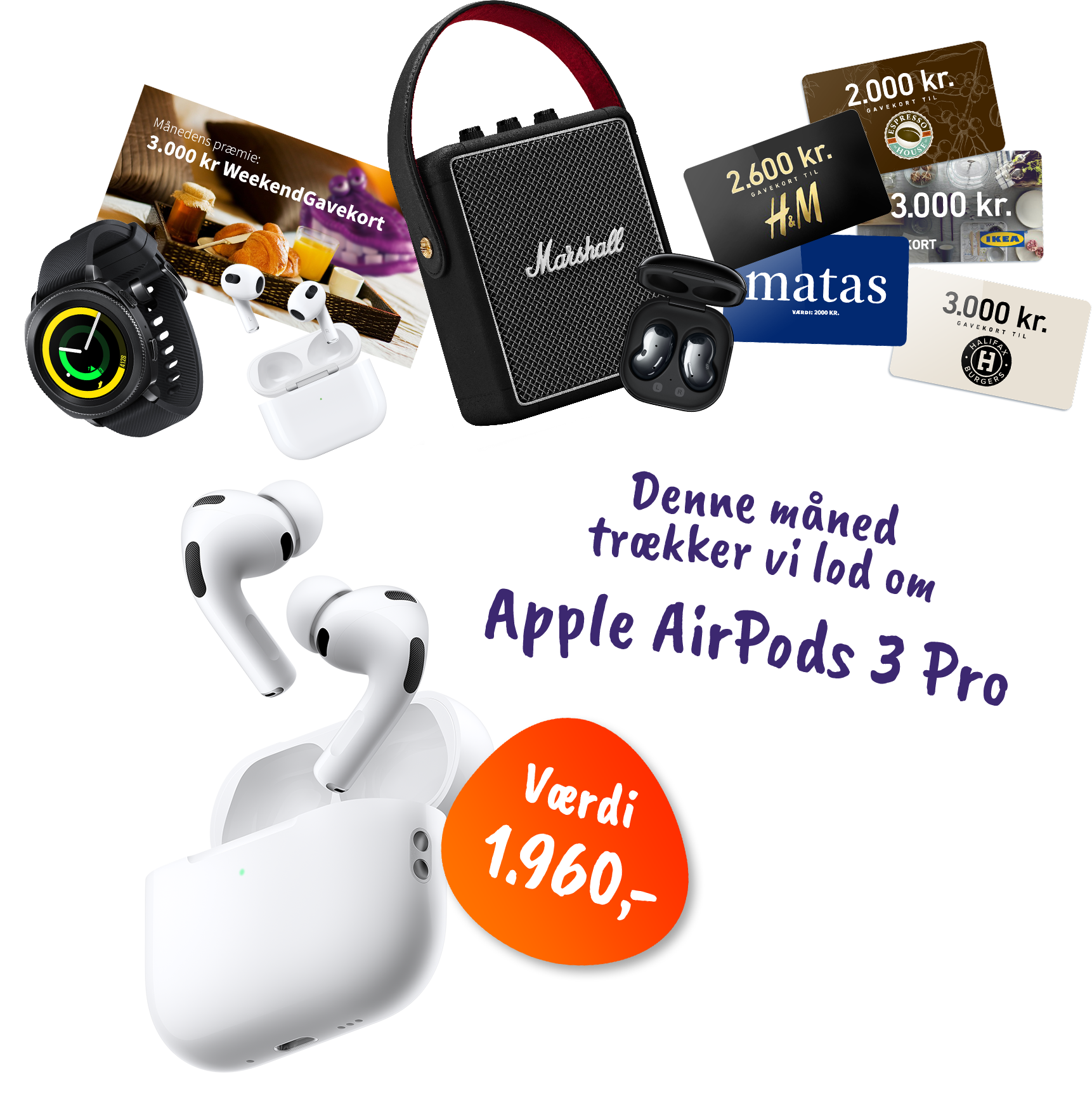 I april trækker vi lod om en et par AirPods Pro 3 til en værdi á 1.960 kr.! Præmien kan ikke byttes til kontanter, og vinderen får direkte besked den sidste hverdag i måneden via mail.